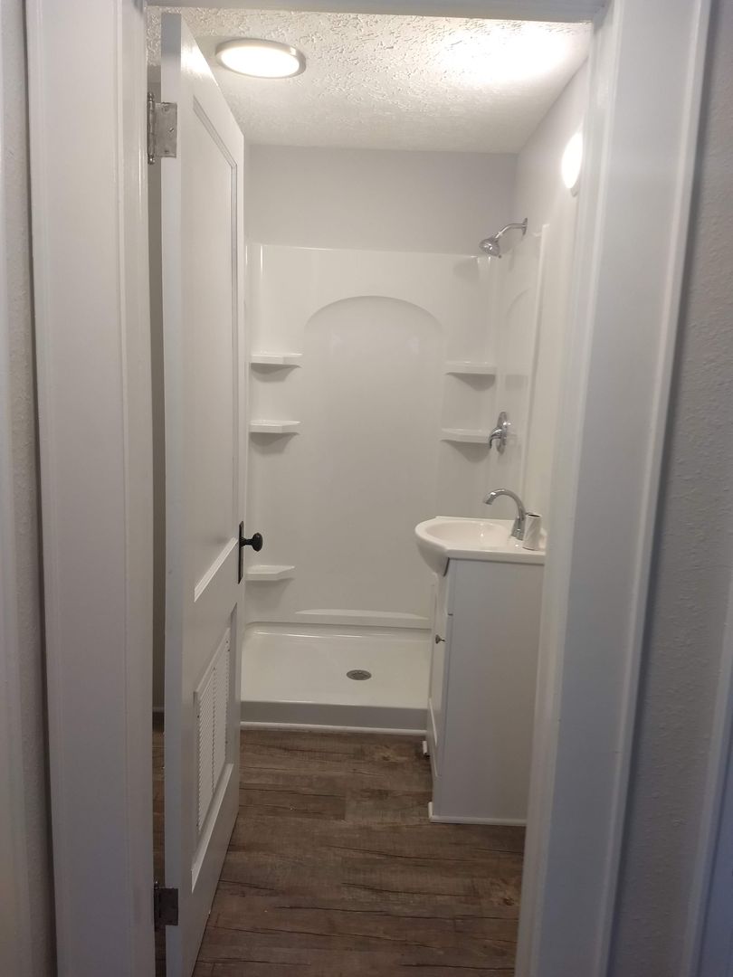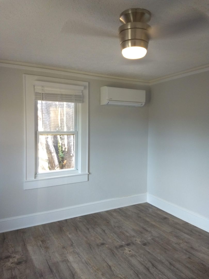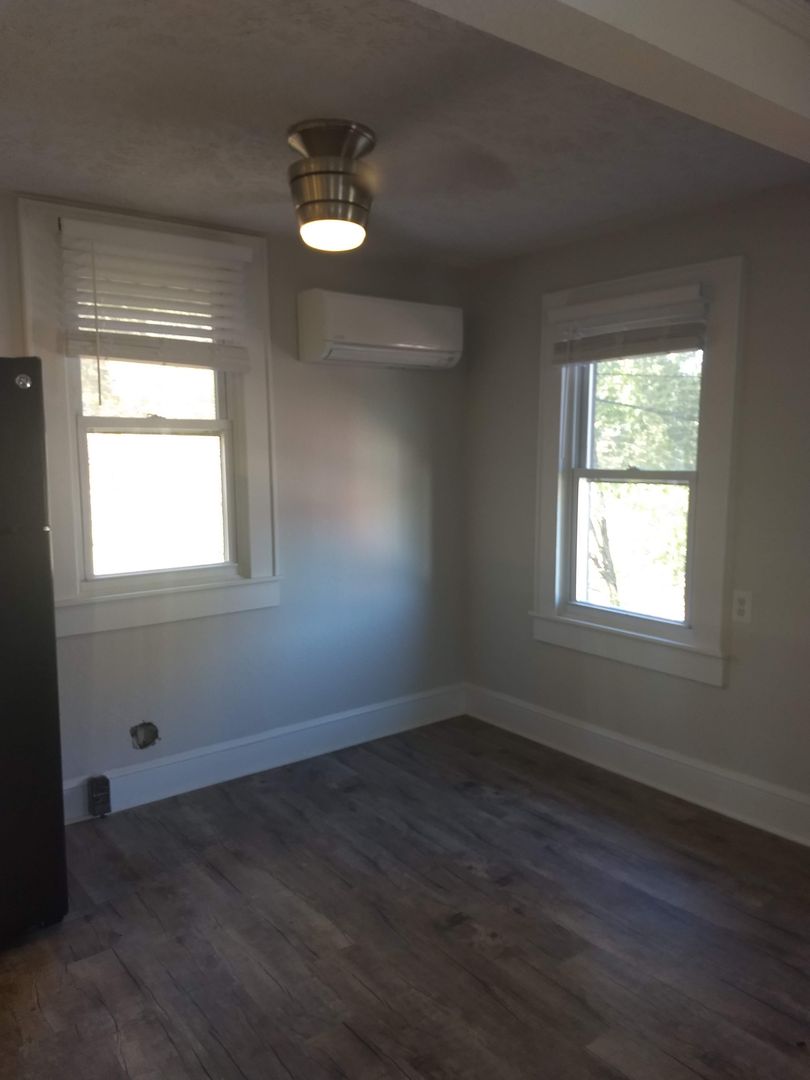 This unit has 1 bedroom, 1 bathroom (with walk-in shower), eat-in kitchen, and a large living room. Rental includes the stove, refrigerator, washer and dryer connection, and heat pump/air conditioning.
