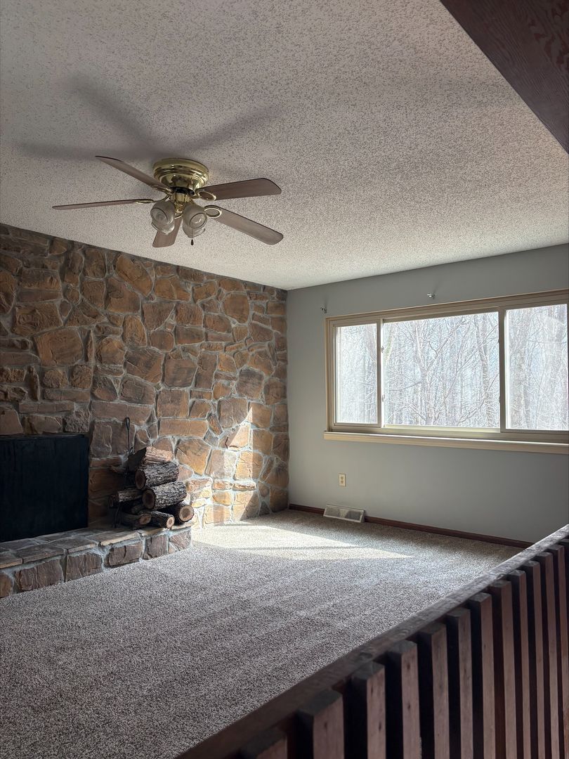Central Heat and Air, Washer/Dryer Hook up. Decorative Fireplace. Large Outside Deck. Lots of Kitchen Cabinets. Refrigerator, Stove, and Dishwasher.